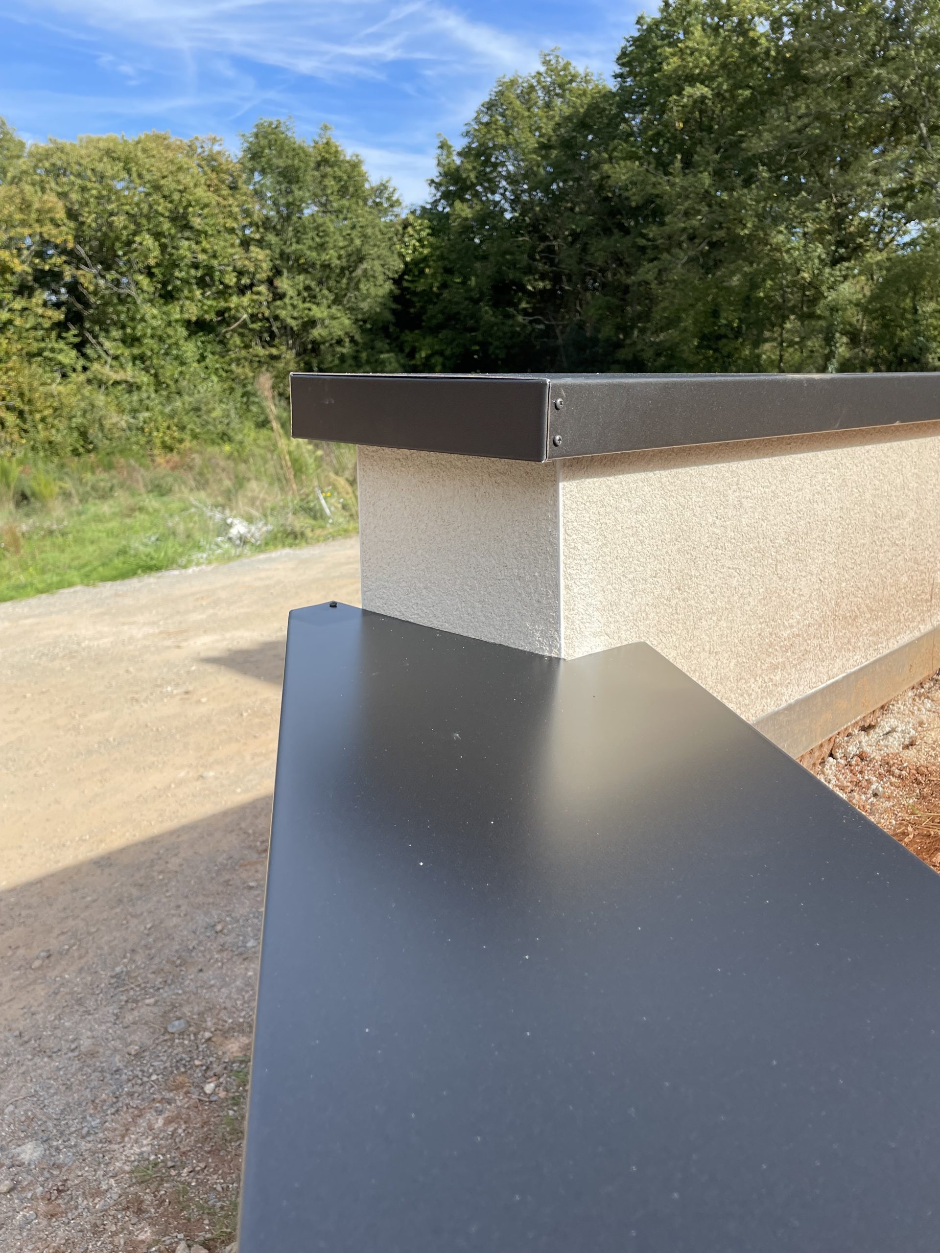 Pour assurer la protection et la finition de vos murets et acrotères, TEOS réalise la pose de couvertines en aluminium ou en zinc sur mesure.
